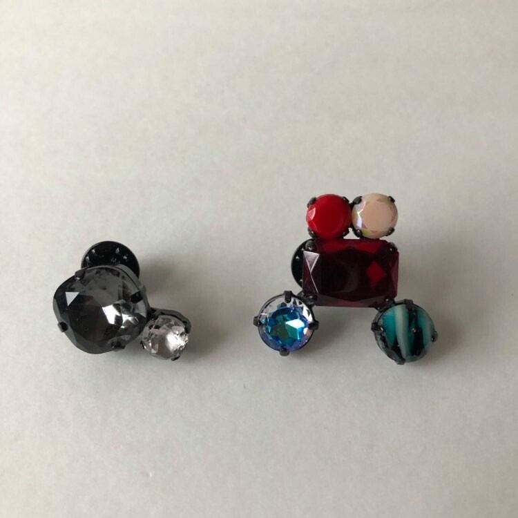 <osmicka (チェコガラス)> ブローチピン 赤2個セット